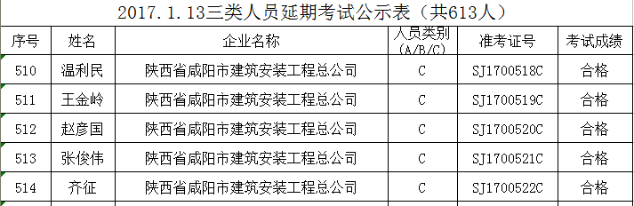 現將全省2017年1月13日受理的袁國慶等613人的建筑施工企業(yè)“三類(lèi)人員”繼續教育考試成績(jì)予以公布,并就有關(guān)事項通知如下: